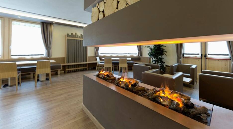 Può essere montato semplicemente a parete con fiamma libera, incassato, ed è anche disponibile con vetri su due lati (bifacciale) o tre lati (trifacciale).